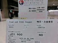 23時58分(西安時間、以下同じ/日本時間-1時間)、着陸。熟睡中に着陸したので、最初は上海に到着したのだと思いましたが、着陸してもスポットにも入らずに駐機したままでしたので、思い切ってCAさん(現地男性)に、ここはどこなのかお聞きすると「着陸したのは済南(JINAN)空港(シートに備え付けの機内誌を持って行っていたので、場所も教えていただきました)で、上海空港がスポットがフルのため済南にダイバート。上海まで1時間」とのことでした。(この間のやりとりは全て英語)