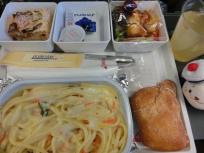 15時45分、1回目の機内食。パスタ(洋食)orビーフ(和食)で、直前で最後のビーフがなくなり、選択の余地なくパスタ(涙)。