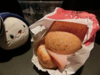 21時、トイレに行った帰りにギャレーに飲み物をいただきに寄ると、見たことのないサンドイッチがあったのでおやつにいただきました。ただ、このサンドイッチは私の胃に重すぎて半分残しました。