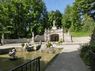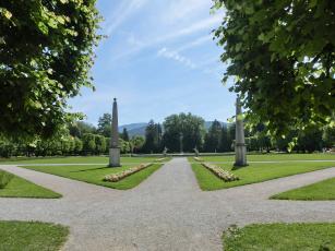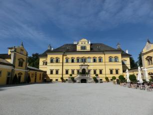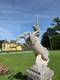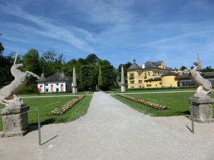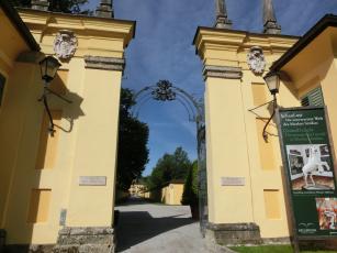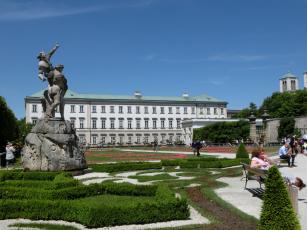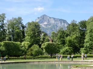 庭園から見えるウンタースベルク山→は、「サウンド・オブ・ミュージック」のラストシーンのロケが行われた山だそうです。あの山の稜線がラストシーンですかぁ。本当にザルツブルク近郊のあちこちでロケをしているのですね。実感。