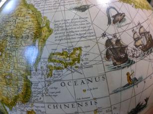 宮殿内にあった地球儀。日本もありましたが…その地球儀の日本は ← (^_^;) 北海道がありません。17、18世紀ごろの日本の認識なのでしょう。
