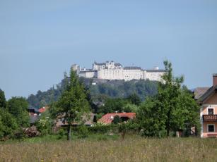 フリータイムはアッと言う間に終了。再集合して駐車場に向かう途中で、ホーエンザルツブルク城の姿が綺麗に見えました。ヘルブルン宮殿とホーエンザルツブルク城の位置関係が意外に近い感じでビックリ。