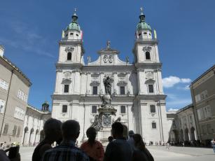 モーツァルトの生家の見学後に向かったのが、ザルツブルクの大聖堂。白くてシックな教会でした。