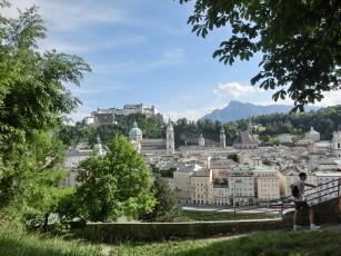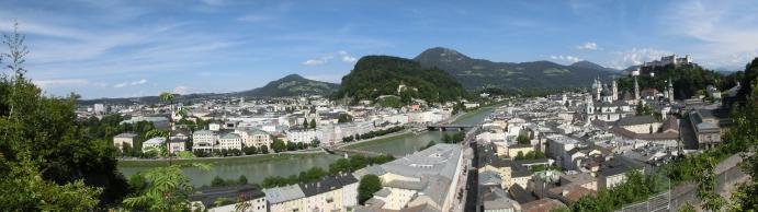 メンヒスベルクの丘はホーエンザルツブルク城と同じ旧市街側にあります。少しずつ位置を代えてザルツブルクの街並みを堪能。