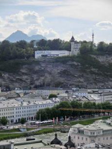 メンヒスベルクの丘からザルツブルクの街並みを見渡すためにメンヒスベルクのエレベーターに乗車3.7EUR(約480円)。