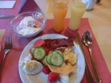 オレンジジュース、マルチビタミン共に薄く、全体的に前日のウィーンのホテルの朝食のほうが美味しかったです。