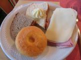 目玉焼きがありましたが、3人前の人がラストを取り、食べられませんでした。後で補充されたようですが。ヨーグルト4種。パンは丸い菓子パン状のものが美味しかったです。