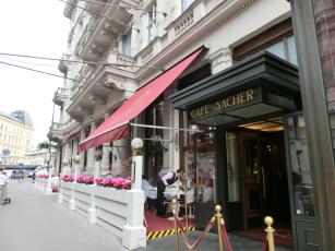 前日、デーメルでザッハトルテとアインシュペナーを食べ&飲み、この日はカフェ・ザッハで全く同じメニューのザッハトルテとアインシュペナーを食べて飲みました。