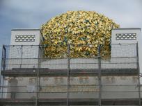 降りるときに仮設エレベータのステップ数を数えていたら、8階か9階くらいの高さがあったようです。
