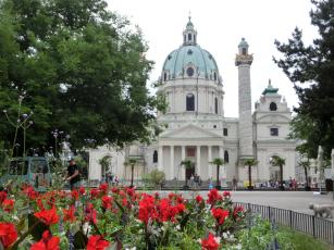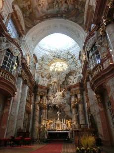 このカールス教会の天井画をどなたが描かれたのは、残念ながら存じませんが、このような大きな教会のドームの天井画を間近で見られる機会は滅多にないと思い、このときの旅行でカールス教会を見学場所に加えました。