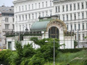 昼食後、カールス教会に行く途中に遠めにカルスプラッツ駅の旧駅舎が見えました。アールヌーボー様式の駅舎は、現在は駅舎としての役目を終え、内部はカフェになっているそうです。