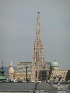 ←シュテファン寺院。離れたところの高所から見ているので、シュテファン寺院の屋根の双頭の鷲の模様が良く見えました。ラッキー☆