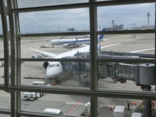 7時23分から7時28分、チェックイン。席は3-3-3配列の窓側3席のうちの通路側2席を特典航空券を予約したときに指定済(^^)v