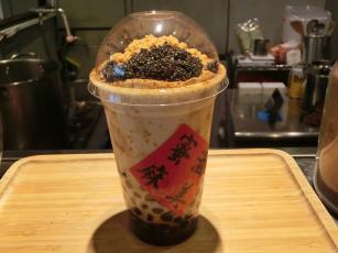 きなこ+黒ゴマのタピオカミルクティ60元(約240円)。タピオカミルクティにきなこと黒ゴマが乗っているので、それをかき混ぜて飲む&食べると超々甘い、極甘かつお腹に貯まる一品でした。春水堂のタピオカミルクティのお上品さからは真逆のB級グルメ感爆裂の品でした。