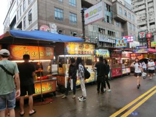 ツアーの行程では夕食後のはずの一中街夜市の散策ですが、天候が不安定な時期でもあり、夕食後も雨が降っていない保障はないので、雨の降っていないこのタイミングで一中街夜市散策をしてしまおうという現地ガイドさんの提案を了承。春水堂から一中街夜市の場所へ直行しました。