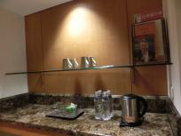 ポットあり。水が4本、カップが4つ。TVはPanasonic。