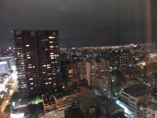 ホテルに帰り、ホテルの部屋の奥の部屋から台中の夜景を見ているときに、えむちゃんが重大な事実に気づきました。それは、この奥の部屋は大通りに面しているので、自動車の走行音がかなりうるさいということです。
