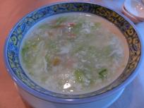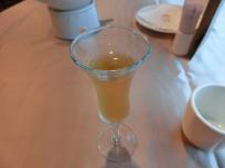 テーブルには温められているジャスミン茶がセッティング。冬瓜茶から夕食スタート。ビールまたはオレンジジュース1杯が夕食に付いているということで、オレンジジュースをお願いしました。