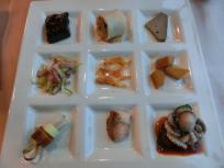↑ 九宮格は地方の名物とのことで、メニューに9つのそれぞれの名前が載っているのですが、メニューの記載順と料理の並び順が違いました(唯一、判別できるタコで推察)。とりあえず、メニューに記載されている順で記載されている料理名は、サァカォルン、五味タコ、東港桜エビ、新竹ルンビ、東港からすみ、宜蘭フェカン、台湾原住民の焼豚、客家のたけの煮物、宜蘭ヤサンです。