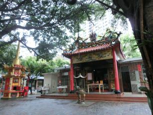 すると、見るからに寺院か廟と思われる建物に行き当たりました。扁額を読むと萬應公をお祀りしている廟?のようです。このときの旅行で最初の中華な建物との出会いでした。