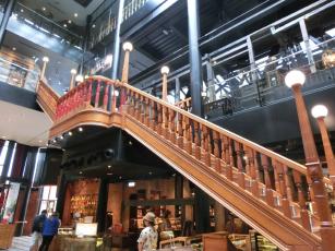 喜んで、まず1階部分から見上げて写真撮影。階段を上ろうとしたら…2階店舗の営業時間の関係か、階段は閉鎖されていて2階へは上れず仕舞いでした。2階から吹き抜けを見下ろすのを楽しみにしていたのに…(;_;)