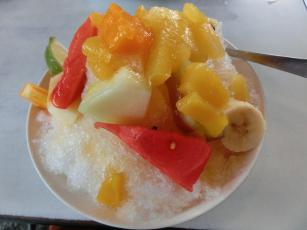 安平から台南市内に戻り、莉莉という水果店(果物店)で、フルーツカキ氷のおやつタイム。こちらも、ツアーの行程に含まれています。