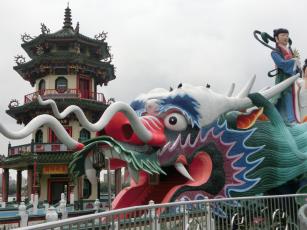 10時、高雄の蓮池潭の龍虎塔前に到着。