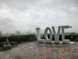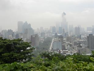 寿山公園からは高雄の街並みが一望できるはず…が、高雄のシンボルの高雄85ビルは、低く垂れこめた雨雲の中に ↓。