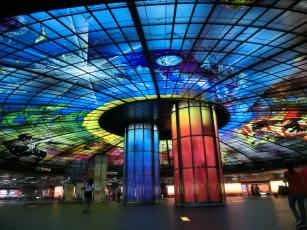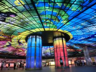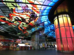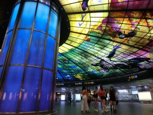 駅の空間を上手~く利用して、オシャレスポットになっています。4500枚のステンドグラスからなる光のアートは圧巻。