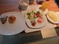 オムレツを焼いていただき、中華の点心も少しだけいただきました。