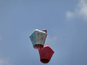 願いを乗せて天燈は、青い空に高く高く舞い上がって行きました。