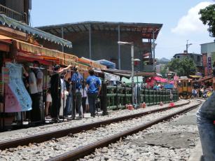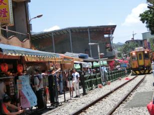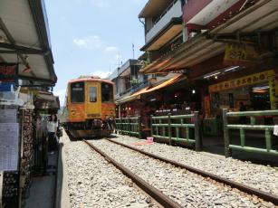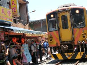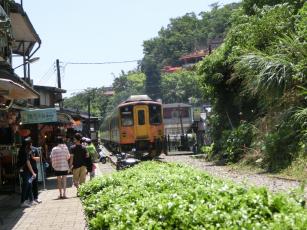 この日のフリータイムのメインイベントである天燈上げを終え、十分老街の雰囲気を楽しんでいると、タイミングよく瑞芳行きの列車が十分駅に到着しました。