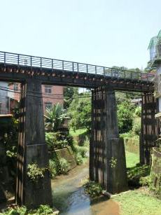 ここまで来ると、その数分後には、→ の川にかかる平渓線の鉄道橋も見られました。