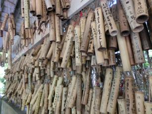願い事が書かれた竹筒が、水道塔(?)にも吊るされていました。