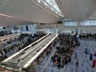 電車が混雑しないうちに早めに羽田空港へ。