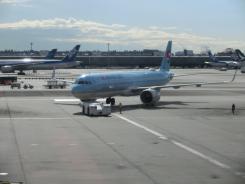 エアのGSさん、カードラウンジの受付係さんのお二方から、「遠いゲートなので余裕を持って」と注意されたので、9時30分にカードラウンジを出て、ゲートに向かいます。