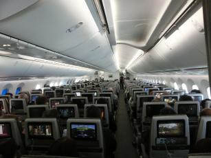 搭乗機内の様子を機内後部から1枚。