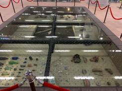 北門駅構内を歩いていると↓のように、なにやら発掘品を陳列展示しているかなり広いスペースがありました。
