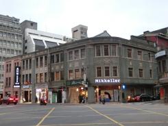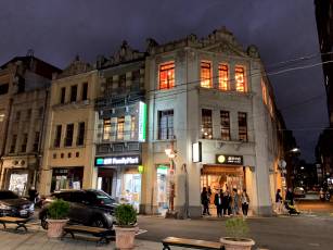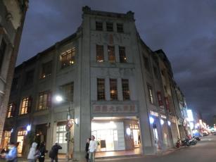 営業中の1階の店舗は煌々と明かりが灯っています。それに反して建物自体はライトアップなし。時間的にレトロな建物が暗くてあまり写真映えしないのが残念です。