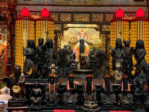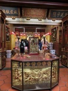 台北霞海城隍廟が完成したのは1856年。祀られている神さまの城隍爺はもとは中国の福建省泉州府同安の守護神でしたが、海を渡ってはるばる台湾へとやってきたそうです。“城隍”というのは、中国の古代神話で都市の城壁の濠の守護神のことで、後に雨乞い、政治・経済の発展、人々の平和、死後の世界などまで、陰陽両界を司るようになったとのことです。