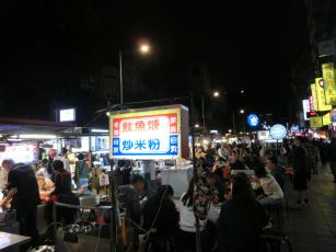 少しのぞくと、食べ物系の屋台がたくさん。行き交う人、食べたり飲んだりしている方々もたくさんの活気あふれる夜市です。