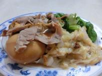 五郎特餐のおかずは、煮玉子1つ、厚揚げ1切れ、白菜、青菜、豚肉。少しずつの盛り合わせで、色々食べられるのが嬉しいセットです。煮玉子は味がしみしみ、白菜と青菜にかかっているタレ?が美味しかったです。豚肉も厚揚げも食べやすく、雞飯は普通のお茶碗に軽く1杯分くらいの量で、あっさり味で美味しくいただきました。