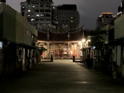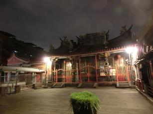 台北霞海城隍廟と同様に明るく参拝者の方々がお参りされている廟を想像していたら、街灯が灯っているものの参拝者の気配はなし。