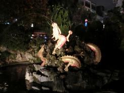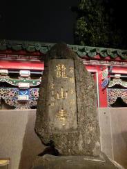 龍山寺拝観も本堂の横から後殿を通り、再び本堂の逆の横を通ると一周して、→の龍の噴水前に出て、19時50分に終了。