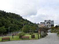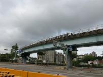動物園駅の駅舎を出ると、猫空ロープウェイ駅まで文湖線の高架の線路を見ながら、駅と駅の間に広がる公園の脇の道路を歩きます。