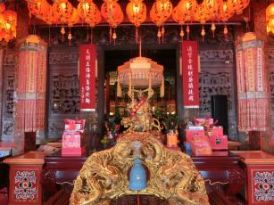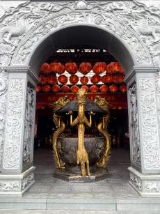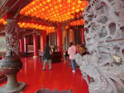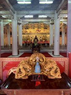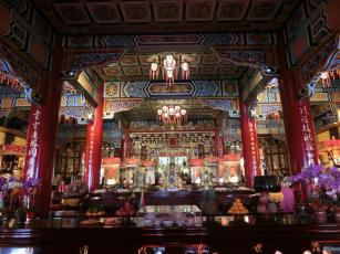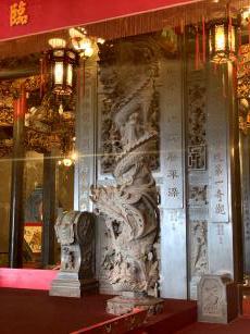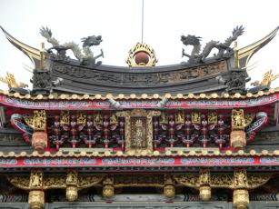 純陽寶殿は、中国の有名な仙人・呂洞賓が祀られている3階建ての建物です。台湾伝統建築界の巨匠である陳應彬の後期における代表的な作品といわれおり、赤い提灯が沢山ある龍の彫刻が施された石造りになっています。