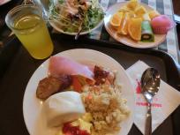 7時開始の朝食に7時に行き、朝食券をスタッフさんに渡して入場。前日よりも宿泊客さんの出足が早く、ようやく窓際のテーブルを確保できました。