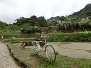 ここで思い思いのポーズで記念写真。古き良き時代の田舎で自転車を乗っている感じでしょうか。