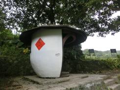 昼食のアフタヌーンティーを食べ終え、猫空カフェ巷からロープウェイ猫空駅に向かう途中に、←のような釣鐘のようなものと、その脇にその説明文がありました。 何か形が珍しくて写真撮影してから、説明文に目をやります。