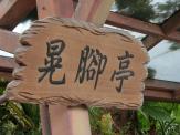 先客さんのお邪魔にならないように、この休憩場所=晃腳亭の椅子の端に腰かけてみると、この腰かける部分が非常に高い位置にあり、背の高くない私が腰かけると脚が地面につかずにブラブラしてしまいました。